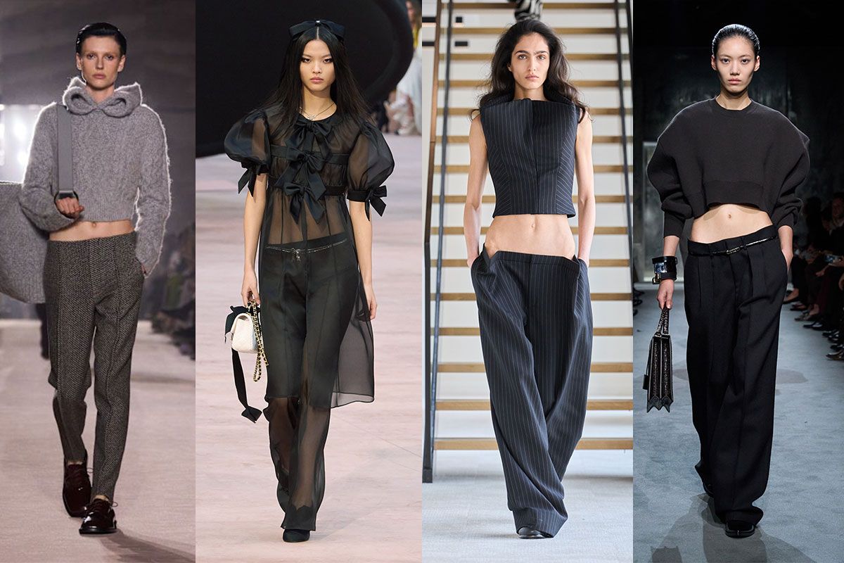 Брюки с низкой посадкой возвращаются, но теперь без привычных манжет в духе Y2K. Новые модели чистые, лаконичные и изысканные. Виктория Бекхем в этом сезоне превратила сомнительный тренд в элегантность, а её фирменный крой делает низко посаженные брюки ультрашиком. Chanel предлагает современные силуэты с мягким объёмом, а Duran Lantink сочетает полоски с эффектными разрезами. А Том Форд? Брюки с низкой посадкой у него создают современную, стильную сексуальность, особенно в паре с мягким укороченным свитером для легкой прохлады.