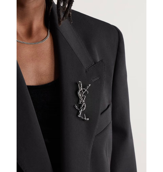 Каждый образ становым, когда вы носите эту серебряную брошь Opyum от Saint Laurent. Отлитый из латуни в любимой монограмме YSL дома, он окрашен черными акцентами, чтобы создать эффект крокодила. Прикрепите свои на гладких лацканах и шелковых шарфах.